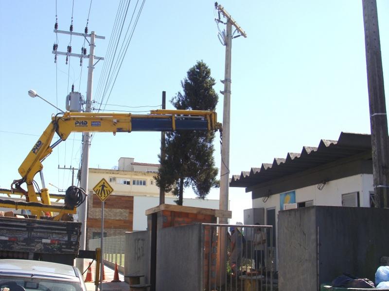 A LUMAR COM SUA EQUIPE DE COLABORADORES CONSTRUINDO UMA ENTRADA DE ALTA TENSÃO PARA A EMPRESA CLEMAR ENGENHARIA NO CENTRO DE FORQUILHINHA-SC
