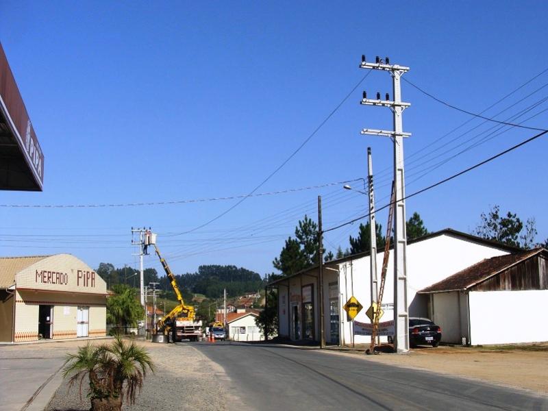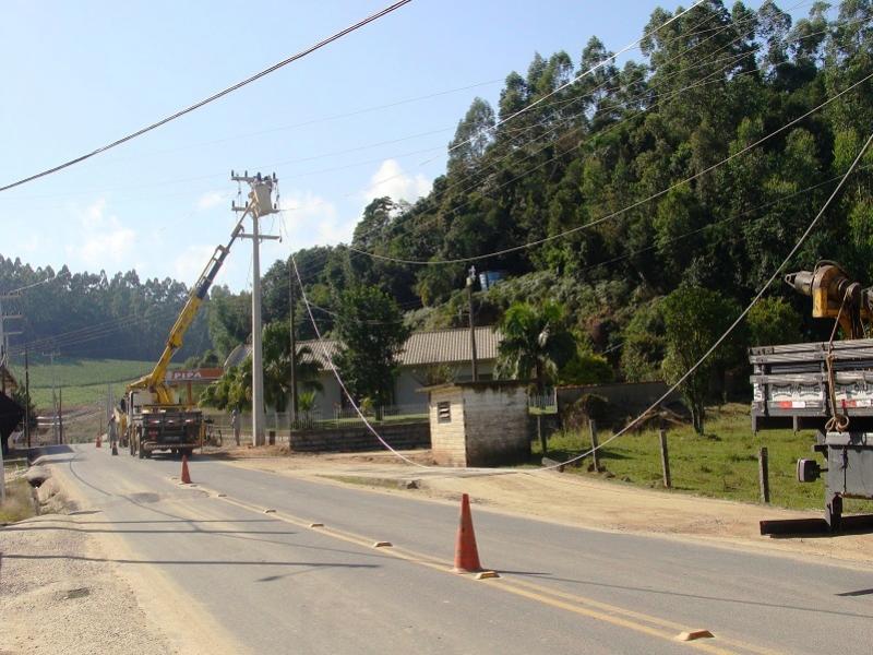 MAIS UMA ETAPA DE LANÇAMENTOS DE CONDUTORES NA CONSTRUÇÃO DE REDES ELÉTRICAS DE 34,5KV PARA URBANO AGRO INDUSTRIA LTDA EM BRAÇO DO NORTE-SC