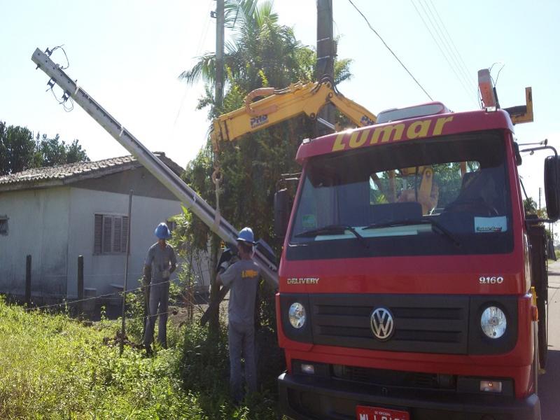 AS EQUIPES LUMAR DE REDES DESENERGIZADA DE CONSTRUÇÃO REFORMANDO E AMPLIANDO A LI...